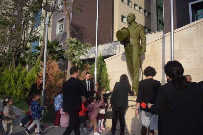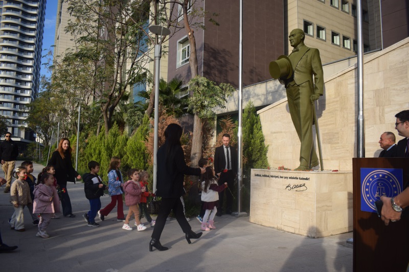 Türkiye Cumhuriyeti'nin Kurucusu Gazi Mustafa Kemal ATATÜRK'ün vefatının 87. yıl dönümü dolayısıyla 10 Kasım 2025 Pazartesi günü bir Anma Töreni düzenlenmiştir. Törenin ardından, İzmir Bölge Adliye Mahkemesi B Blok zemin kat konferans salonunda, Dokuz Eylül Üniversitesi Atatürk İlkeleri ve İnkılap Tarihi Enstitüsü Müdürü Prof. Dr. Kemal ARI tarafından günün anlam ve önemine ilişkin bir söyleşi gerçekleştirilmiştir. Söyleşinin sonrasında ise Ahmet Piriştina Kent Arşivi ve Müzesi (APİKAM) Müze ve Sergiler Sorumlusu Onur ERYEŞİL ile Müze ve Sergileme Görevlisi Nihan ÖZDAL rehberliğinde, İzmir Bölge Adliye Mahkemesi B Blok zemin katında ziyarete açılmış olan "Atatürk, Cumhuriyet ve İzmir" temalı sergisi ziyaret edilmiştir.